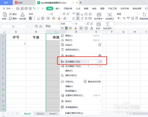 【插入列】在需要插入的列之间,单击鼠标右键,输入插入列数,在左、右插入列,即可完当作列的插入;