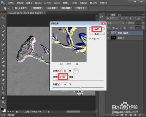 按ctrl+j,点击滤镜菜单,选择气概化下的浮雕结果;