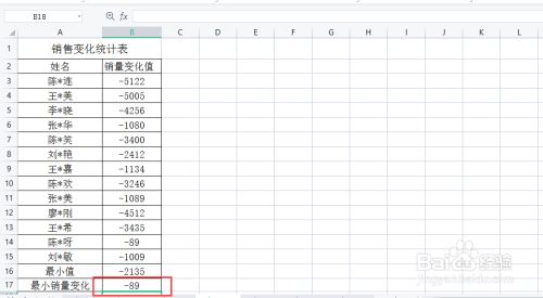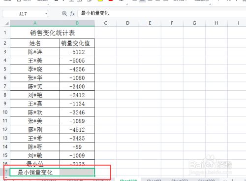 单击选中“最小销量转变”一行。