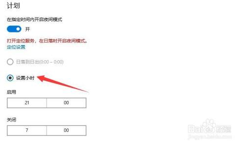 接下来我们可以设置当前护眼屏幕起头的时候段性信息,勾选设置小时选项,如图所示。颠末以上设置之后,电脑将在指按时间段后主动启用护眼模式。