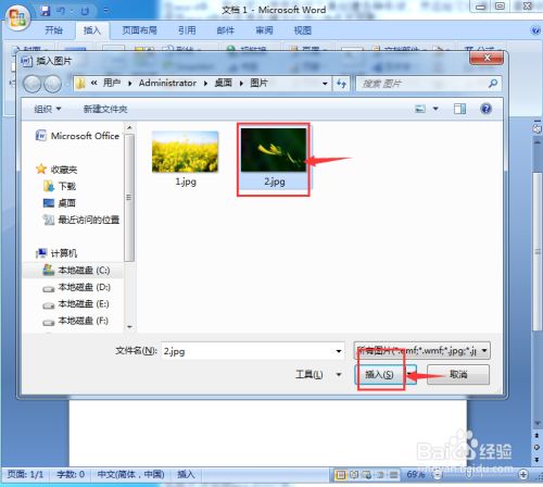选中需要处置的图片,按插入;