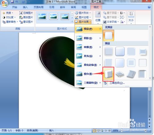 我们就在word 2007中给图片添加上了心形外形。
