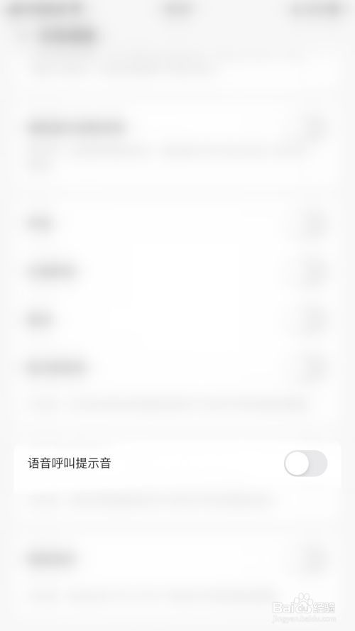 “语音呼叫提醒音”后面的圆点变为灰色即暗示封闭声鉴语音呼叫提醒音当作功