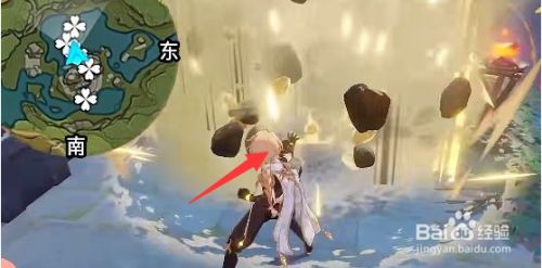 利用岩属性技术激活今后,利用安柏进犯远处的火药桶,然后飞到适才火药桶的位置。