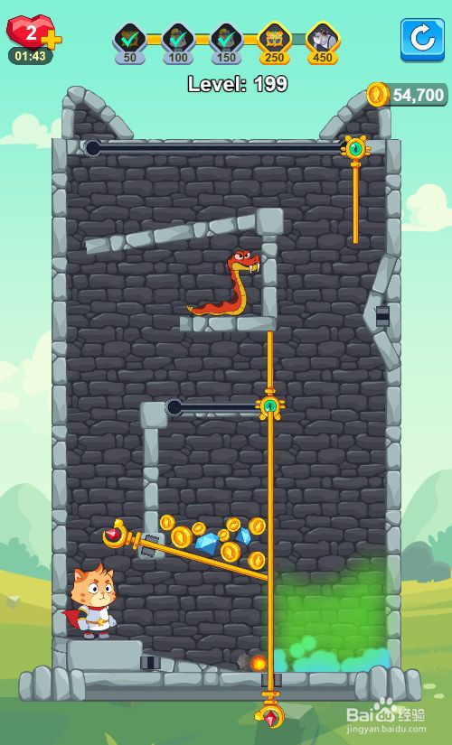 工具/原料三星Galaxy Tab S7安卓Android 11Hero Save the Princess1.0.1方式/步骤1点击拔失落气体上侧的横插销,如图。2点击滑动水左侧的推拉杆,如图。3点击拔失落水下侧的横插销,如图。4点击拔失落岩浆球左侧的竖插销,如图。5点击滑动火药桶左侧的推拉杆,如图。6点击打开宝藏下侧的斜插销,如图,这样就过关了。END