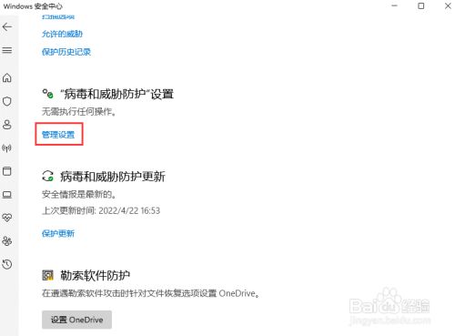 05.找到并点击“病毒和微信防护”设置下的办理设置;