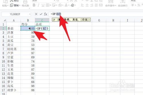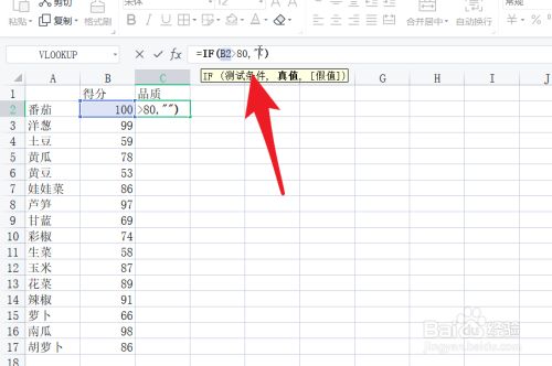 如下图所示,点击显示“品质”成果的单位格,然后点击公式编纂栏。