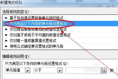 第四步,在新格局法则界面中,选择仅为包含以下内容的单位格设置格局法则类型。