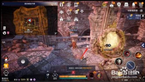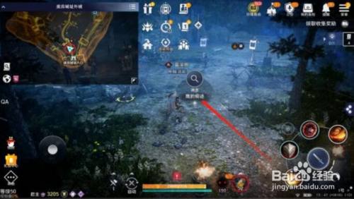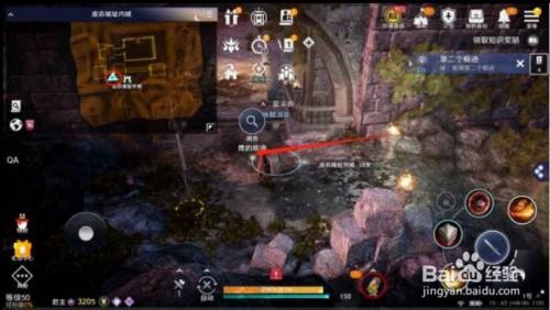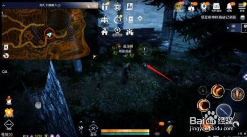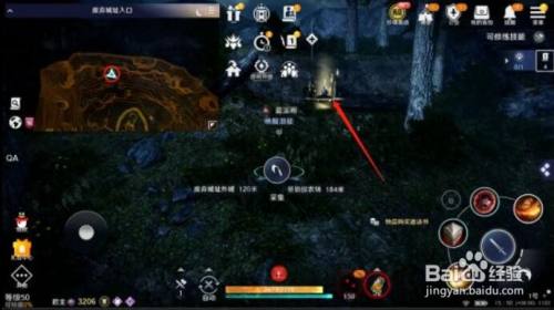 然后我们就顺着小鹰的步履轨迹去到外城的这个位置,第三个陈迹就在【外城】与【进口】的交壤处,一般来说我们从内城跑到这个位置时会拉到一屁股的怪,烦人得很,所以建议多走两步,先去一次【烧毁城址进口】再回外城,这样就能安心摸陈迹了。大地图红色圆圈标识表记标帜为大致地址,本家儿页面红色箭头标示的亮点为第三个鹰的陈迹
