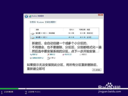 若是安装提醒无法安装到此硬盘,将系统分区地点的硬盘所有分区都删除后从头建新建即可