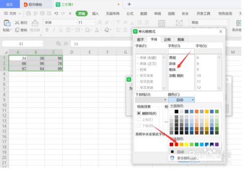 在新弹出的窗口中,【字形】选择【粗体】,【颜色】选择【红色】,最后点击【确定】: