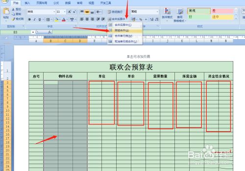 6、如下图所示,依次框选后归并单位格。