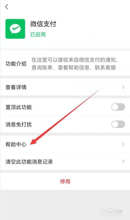 进入微信支付页面里,点击帮忙中间选项。
