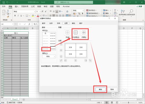 在边框设置中,为表格添加边框,再点击【确定】。