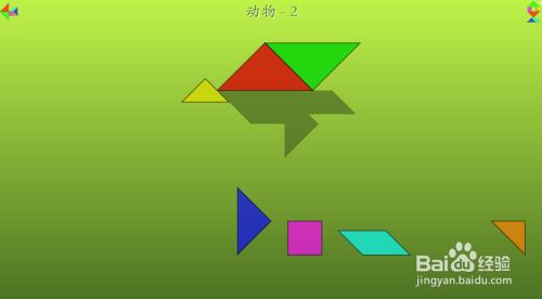 把平行四边形拖放到蓝色三角形的右上侧挨着,如图,这样就过关了。
