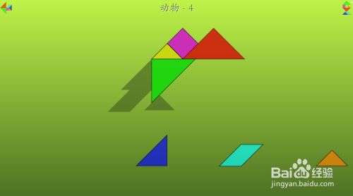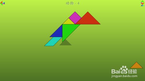 把橙色三角形拖放到绿色三角形的下面挨着,如图,这样就过关了。