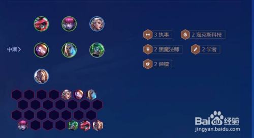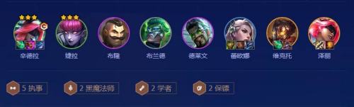早期过渡:前期环绕着声势的棋子拿,执事,黑法,保镖三个类型的棋子都可,若是没有的话,就先用炼金会或者约德尔人过渡也是可以的。