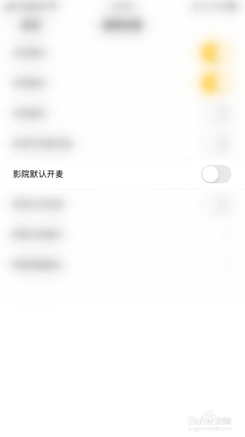 通用设置界面点击“影院默认开麦”后面的圆点