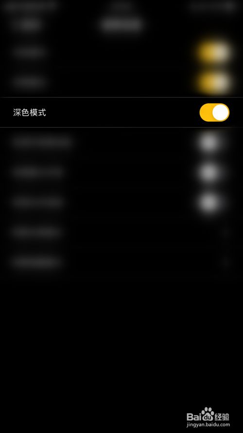 “深色模式”后面的圆点变为黄色即暗示启用同娱深色模式当作功
