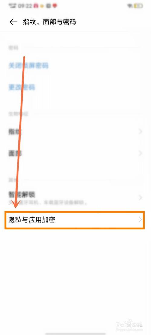 进入指纹、面部与密码界面,点击“隐私与应用加密”选项。