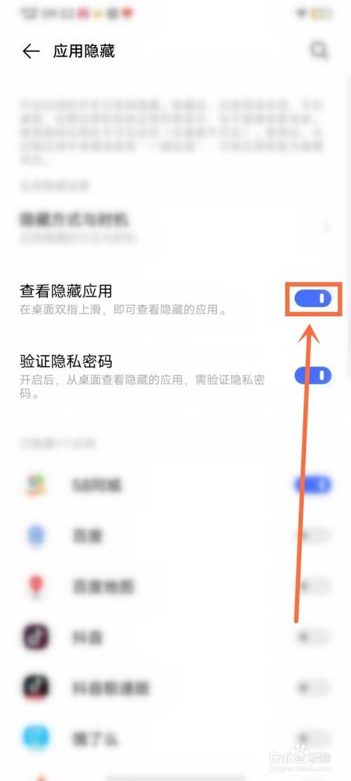 进入应用埋没界面,打开“查看埋没应用”开关,即可开启“查看埋没应用”功能。