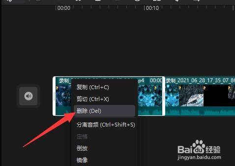 接下来我们鼠标右击对应的已经裁剪的视频片段,从新理解列表中选择删除选项,即可将视频选段删除失落。