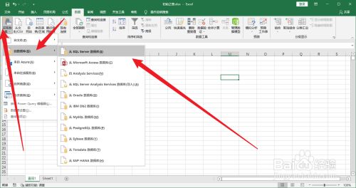接着在数据选项卡下点击左侧的获取数据库,按照本身的数据库类型选择数据库