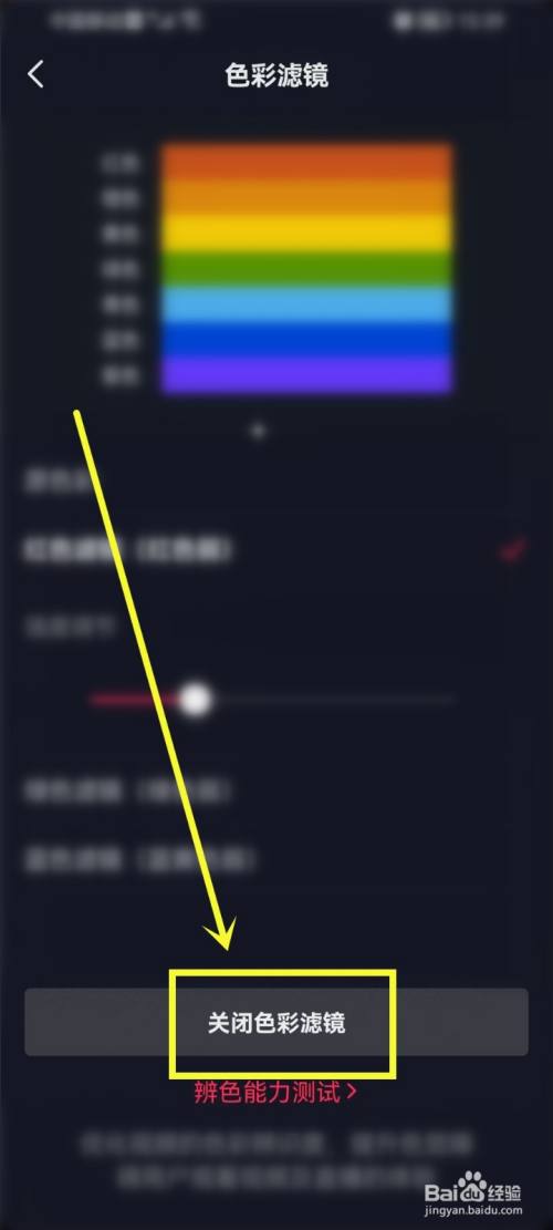 进入色彩滤镜,点击底部“封闭色彩滤镜”按钮。