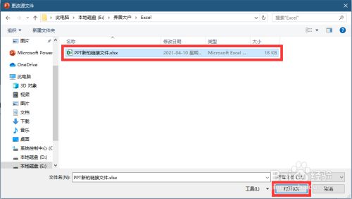 弹出"更改源文件"的窗口,选择文件的新路径,双击或点击"打开"确认