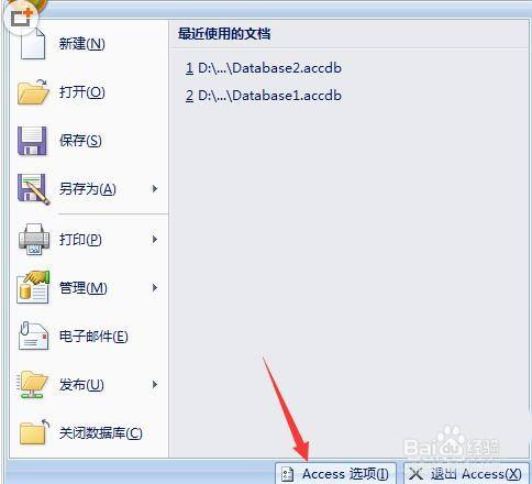 弹出了下拉菜单选中为access选项。