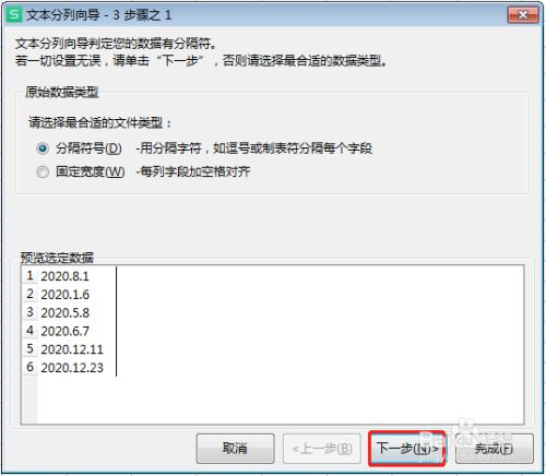 “文天职列标的目的导-第3步”,在“列数据格局”中选择“日期”及“YMD",点击”完当作“封闭对话框。