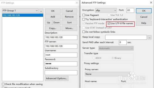 然后,准确填写FTP server的地址和用户名密码,毗连参数设置如下图: