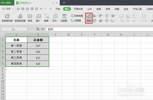 第二步:选中要生当作饼状图的表格,选择菜单栏“插入”中的“图表”选项。