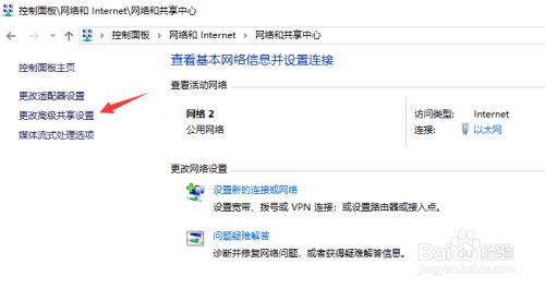 在【共享收集中间中】,选择【更改高级共享设置】。