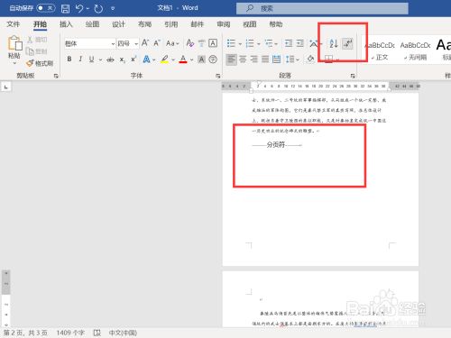 移动鼠标,选择分页符标识表记标帜。