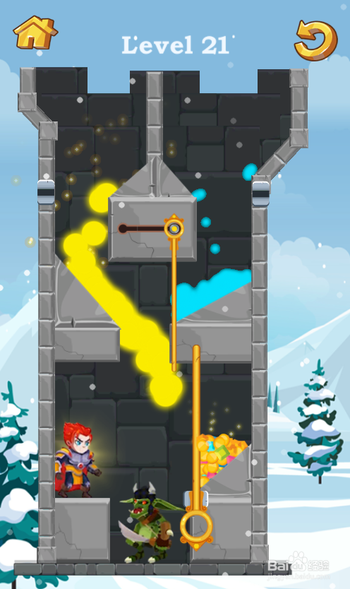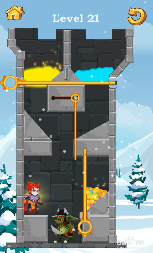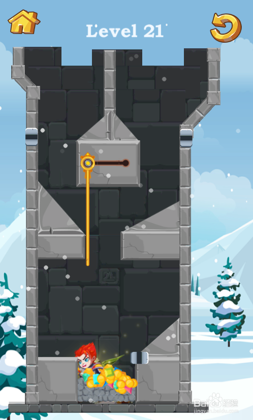 这一关是获得宝藏,有两个拉针与一个竖标的目的推拉杆,环境如图。