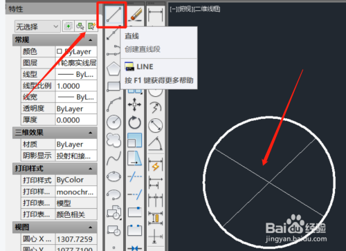 利用直线东西,在圆形中绘制辅助线。
