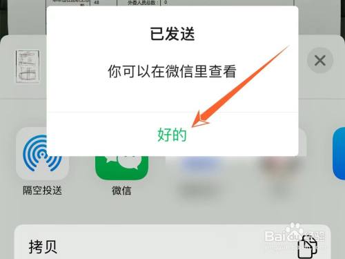 稍待半晌这里显示【您可以在微信里查看】时,就是发送当作功了,点击【好的】封闭当前窗口。