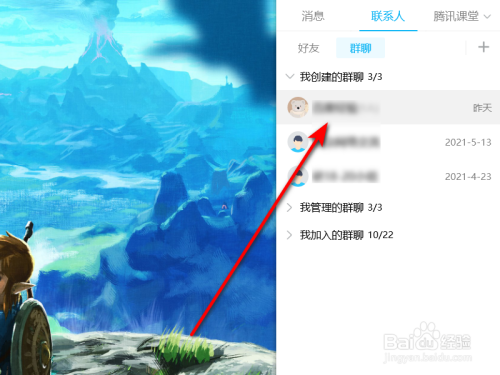 在手机QQ联系人界面选择一个群聊,点击打开。