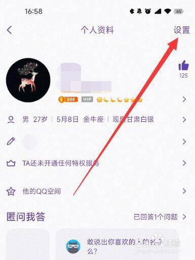 在老友资料界面点击右上角的【设置】按钮。