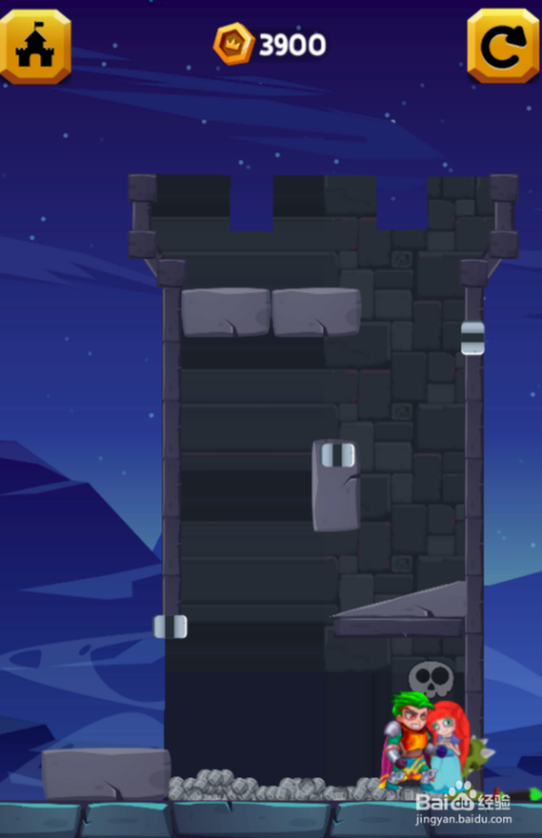 第五关是营救底部的公本家儿,有四个拉针,环境如图。