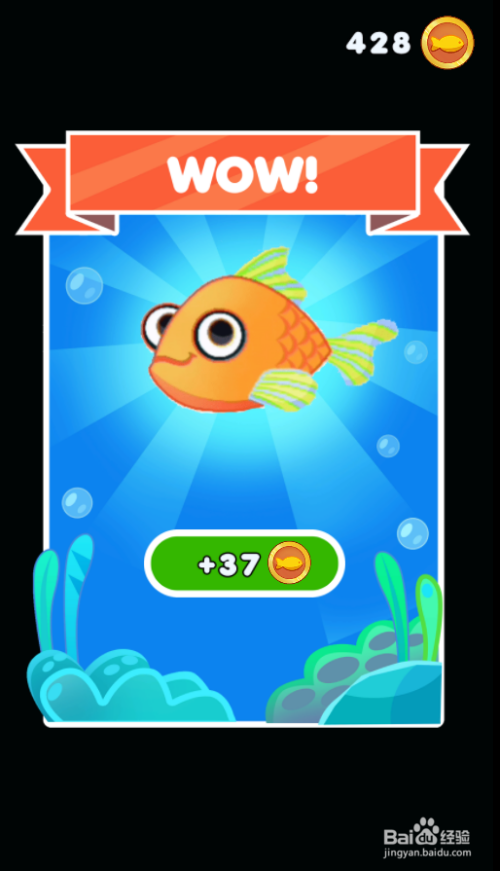 金鱼当作功获救,弹出发光的金鱼动画,如图,这样就通关了。