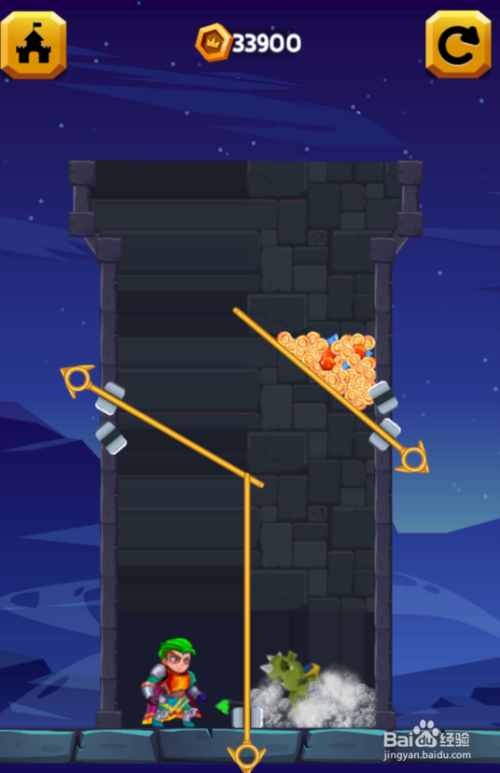这一关是获取斜标的目的拉针上面的宝藏,有五个拉针,环境如图。