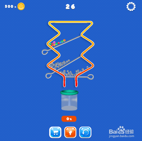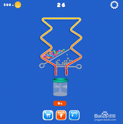 小球全数进入杯子里面,弹出通关动画,如图,这样就过关了。