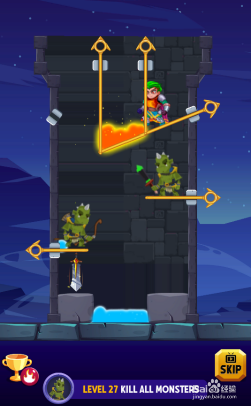 这一关是覆灭下侧的怪物士兵,有六个拉针,环境如图。