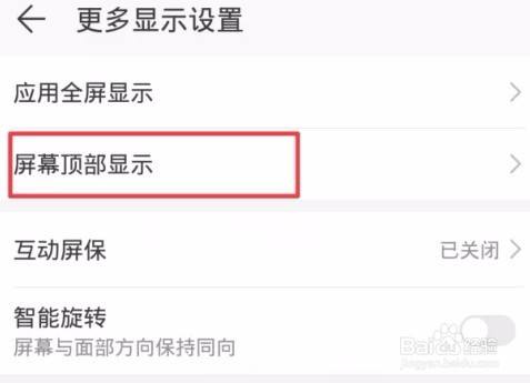 在更多显示设置界面,点击这里的屏幕顶部显示选项。