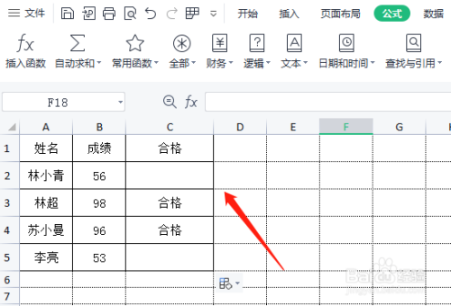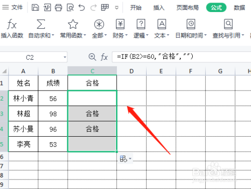 打开excel,要求按照B列的成就进行判定,小于60分的在单位格内不显示。