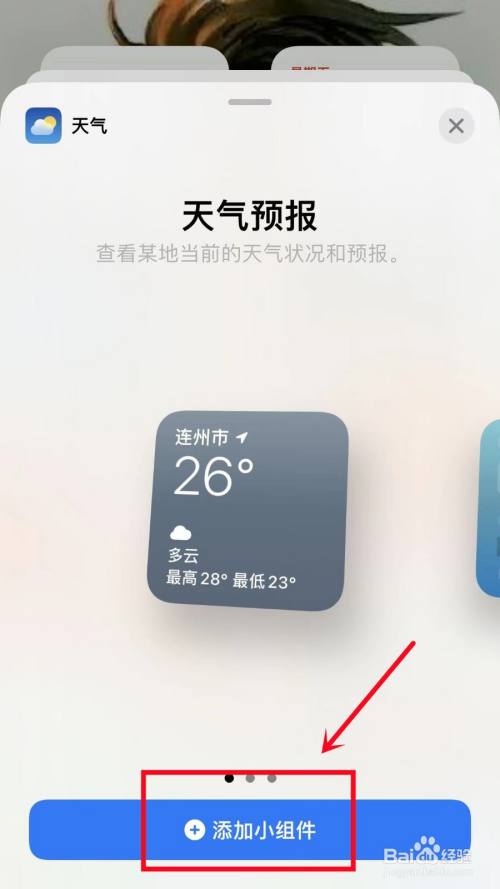 打开手机长按桌面空白处,进入软件编纂状况,点击右上角加号。
