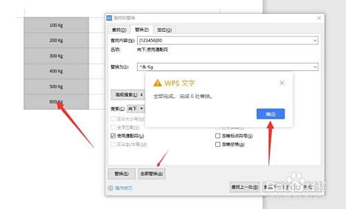 最后,在替代输入框中,输入特别格局,以确保先找到所有查询的内容,之后输入想要追加的内容,点击全数替代按钮就可以了。