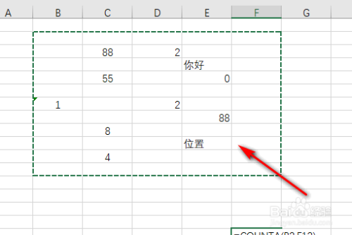 返回后看到统计的有内容的单位格的个数,如下图所示: